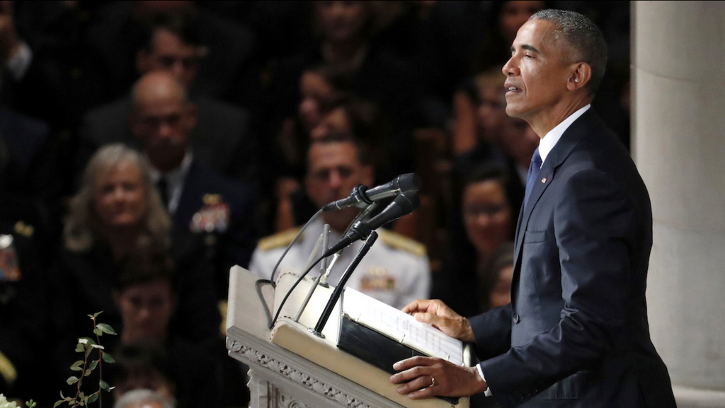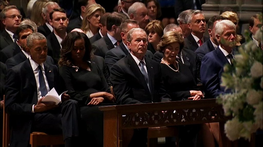 Именно Буша и Обаму МакКейн распорядился пригласить спикерами на свои похороны. Два президента, победивших его на выборах, говорили тёплые слова о покойном сенаторе, как бы показывая: к политическим оппонентам, которых он считает патриотами своей страны у него претензий нет.