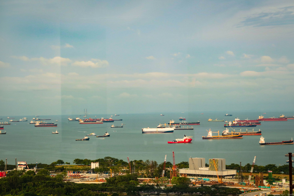 2. Привлекать в свой порт как можно больше торговых судов - часть национальной стратегии Сингапура. Для этого существует множество законов (например, мне рассказывали, что здесь есть чёткие правила, что грузы должны разгружаться меньше чем за 24 часа!) Поэтому у берегов города всегда видно огромное количество судов.
