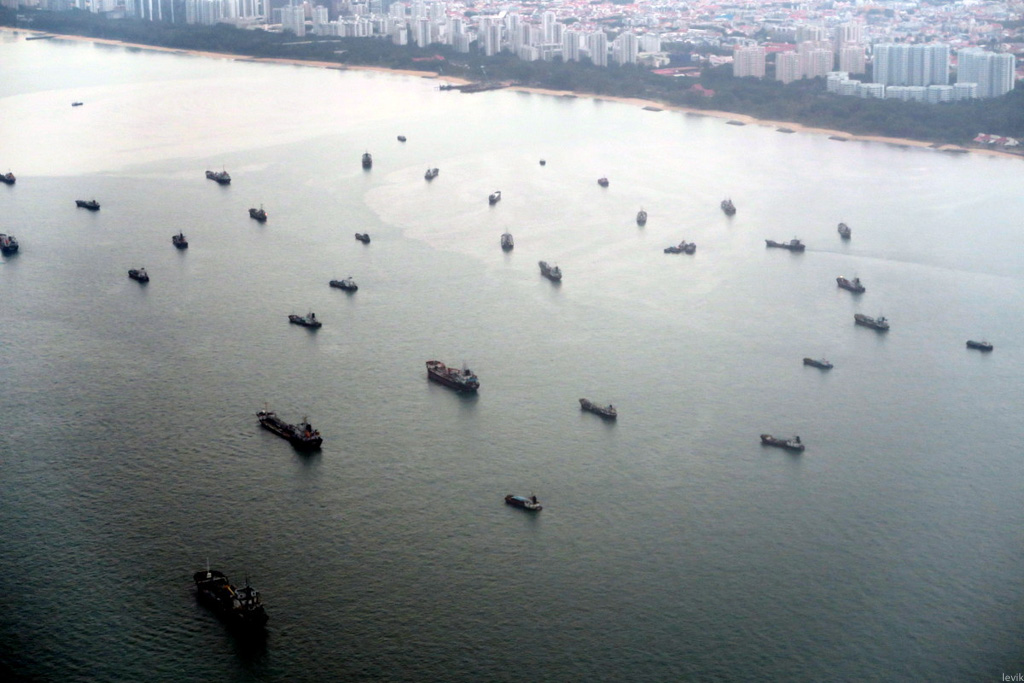 3. Особенно хорошо это заметно с воздуха, подлетая к Сингапуру. Прибрежные воды полны танкерами, сухогрузами, и прочими видами кораблей, чьи названия мне неизвестны.