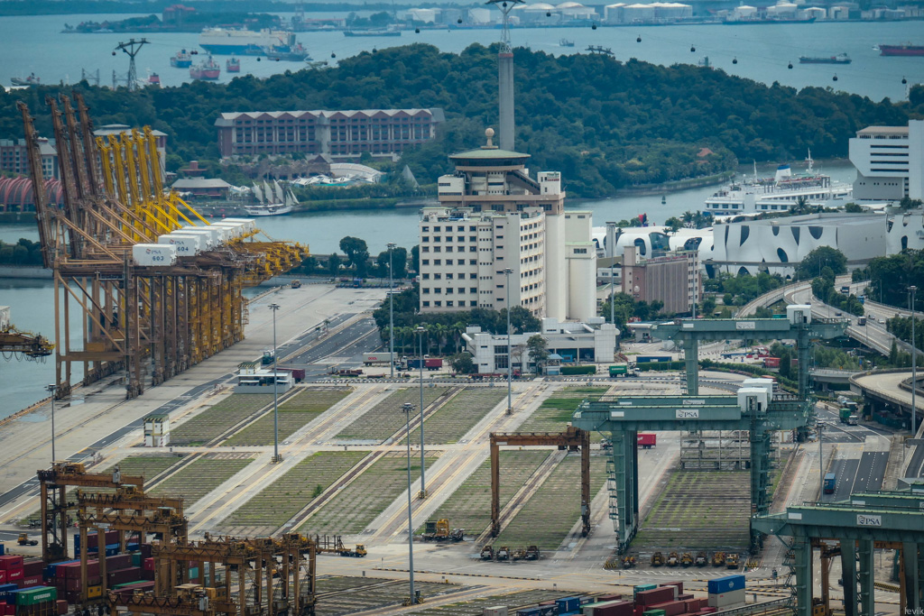Раз уж я в Сингапуре, вчера решил навестить крупнейший в мире скайпарк - крышу жилого комплекса The Pinnacle. Это одно из нескольких мест, откуда открывается отличный вид на город. Хорошо виден и грузовой порт Сингапура. Я, когда сперва посмотрел на него, подумал, что как-то он странно выглядит, непривычно, но не сразу понял в чём дело. Как будто не хватает чего-то. А вы поняли?