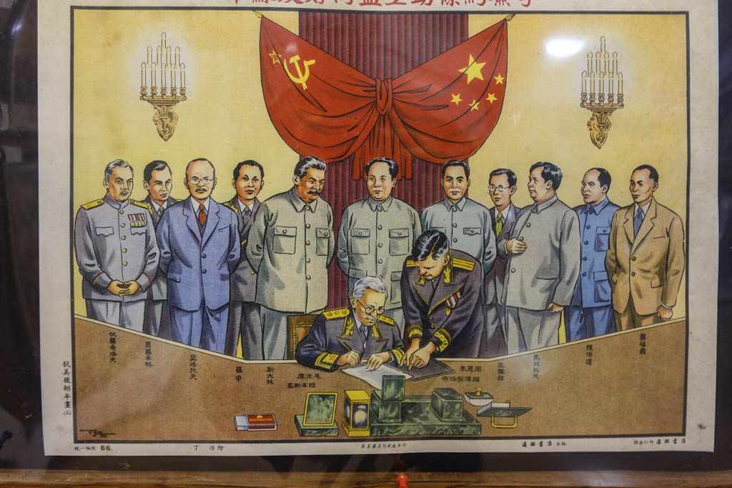 Коллекция захватывает ранние плакаты конца 1940х - начала 1950х, на них эстетический стиль более похож на традиционное китайское искусство - даже товарищ Сталин чем-то похож на китайца.