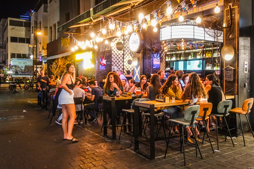 В Тель Авиве почти полночь вечера с пятницы на субботу. Детское время для современного города. Прогуливаясь по бульвару Ротшильд в центре, трудно подумать, что сейчас Шабат, еврейская суббота, в которую нельзя работать, водить машину, прикосаться к деньгам, и даже зажигать свет. На улицах полно народу, все кафе и бары открыты, и забиты шумной молодёжью. С первого взгляда Тель Авив живёт светской жизнью.