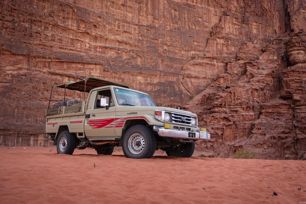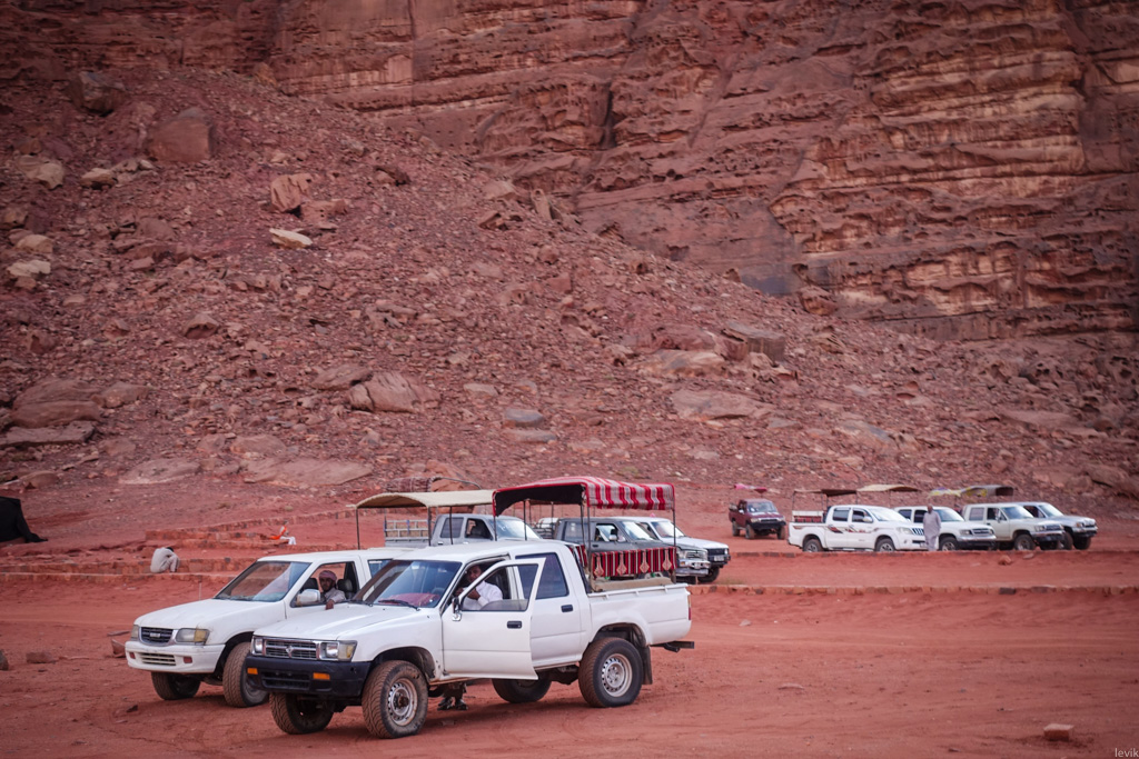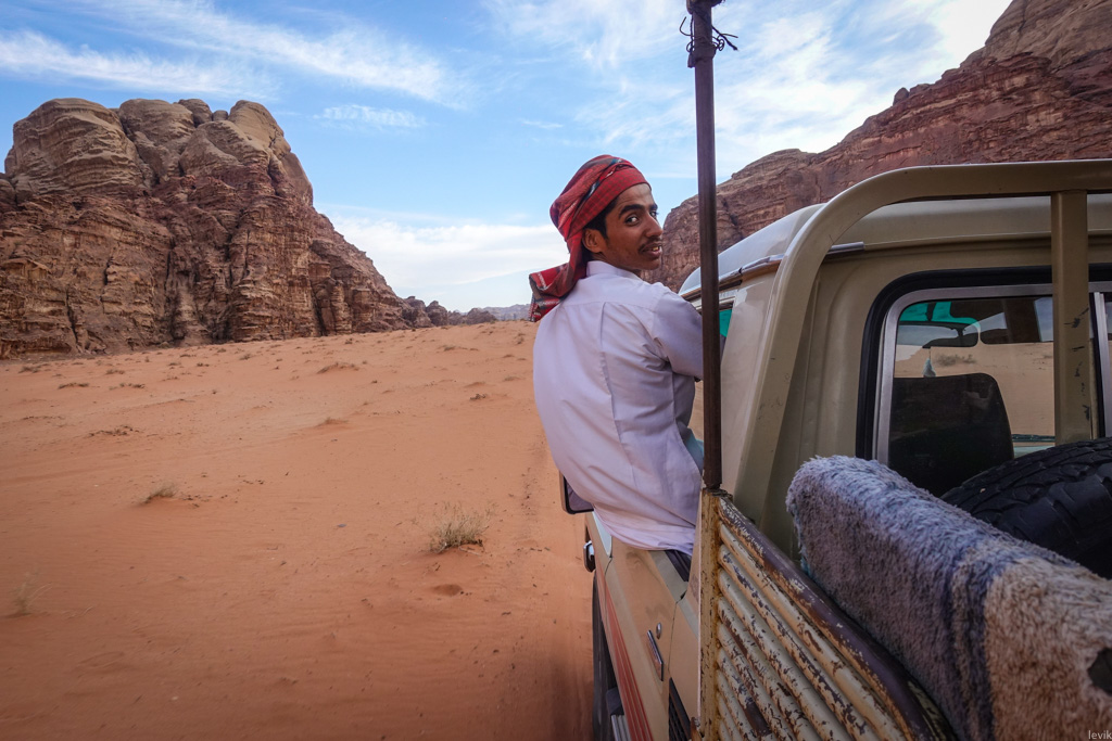 2. В городке нас встретили Аттаяк (хозяин турфирмы, где мы заказали экскурсию) и Мухаммед, наш водитель. Цена однодневного тура была по 60 динаров с человека, и включала в себя частный джип, ночлег в лагере бедуинов, обед, ужин и завтрак. Это совсем недёшево, но, как я понял, в Иордании туристические развлечения довольно дорогие.