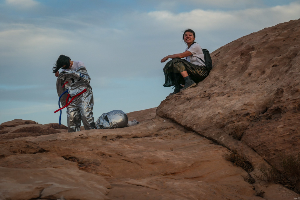 40. Так вот, по странному стечению обстоятельств, в тот же день, что мы приехали на эту закатную точку, там оказались и эти ребята из Китая, которые хотели повторить сцены из "Марсианина".