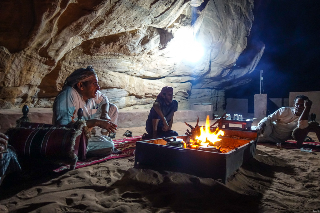 Вокруг костра собралось около полдюжины мужчин, которые беседовали о чём-то своём по-арабски. И лишь Аттаяк, глава лагеря, иногда интересовался у нас нашими впечатлениями.