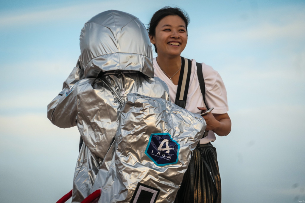 38. ...и тут появился человек в серебристом скафандре! Сначала я не понял в чём дело, но потом оказалось, что два туриста из Китая привезли с собой костюм космонавта специально для закатной съёмки!