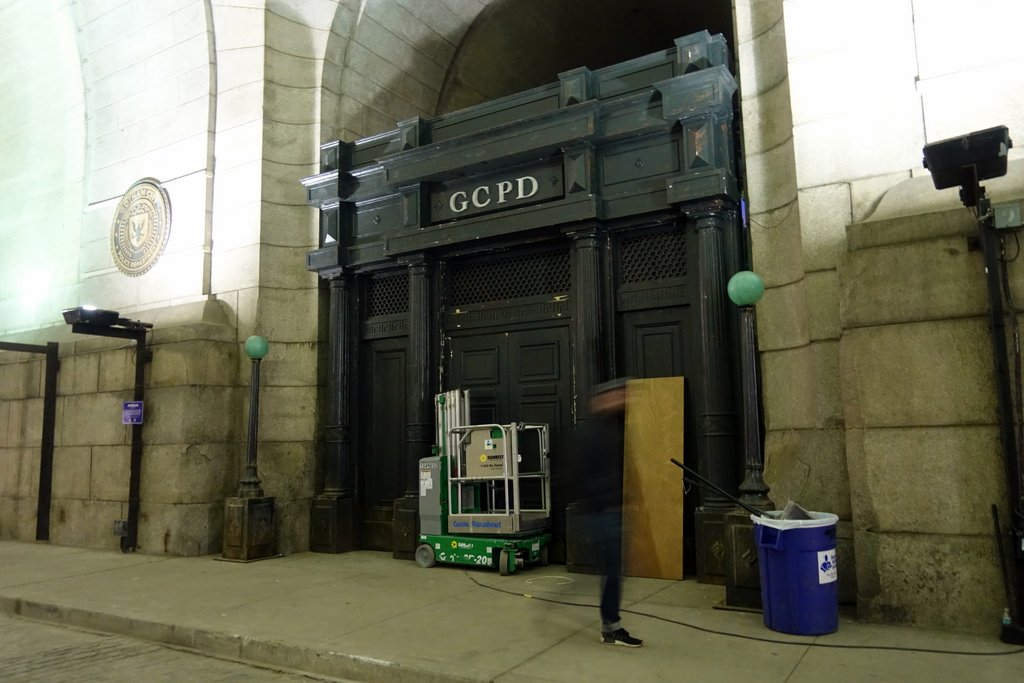 И тут я понимаю, что буквы "GCPD" над входом - это "Gotham City Police Department". Из этого технического входа сделали вход в полицейский участок вымышленного города! А зелёные фонари - отсылка к малоизвестной (но очень старой) фишке нашей, нью-йоркской полиции!