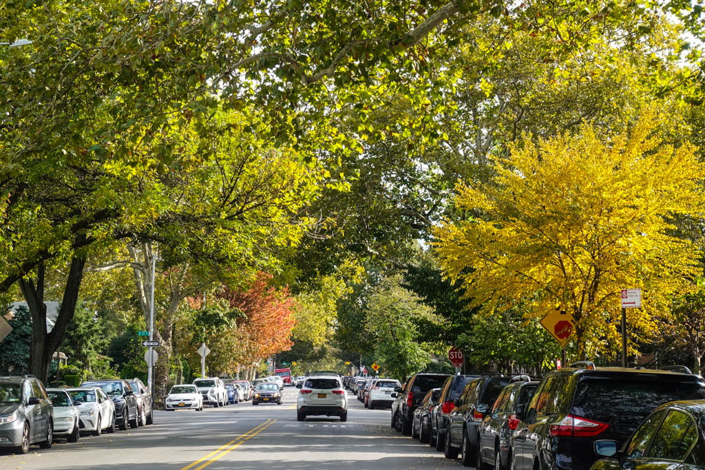 Неделю назад мы с друзьями ездили на север штата Нью Йорк в погоне за осенними красками. Оказалось, что приехали мы рановато - хоть в горах и было очень красиво, большинство листьев там до сих пор зелёные. Но прошло несколько дней, и яркие краски осени сами пришли прямо в мой уголок города в Южном Бруклине.