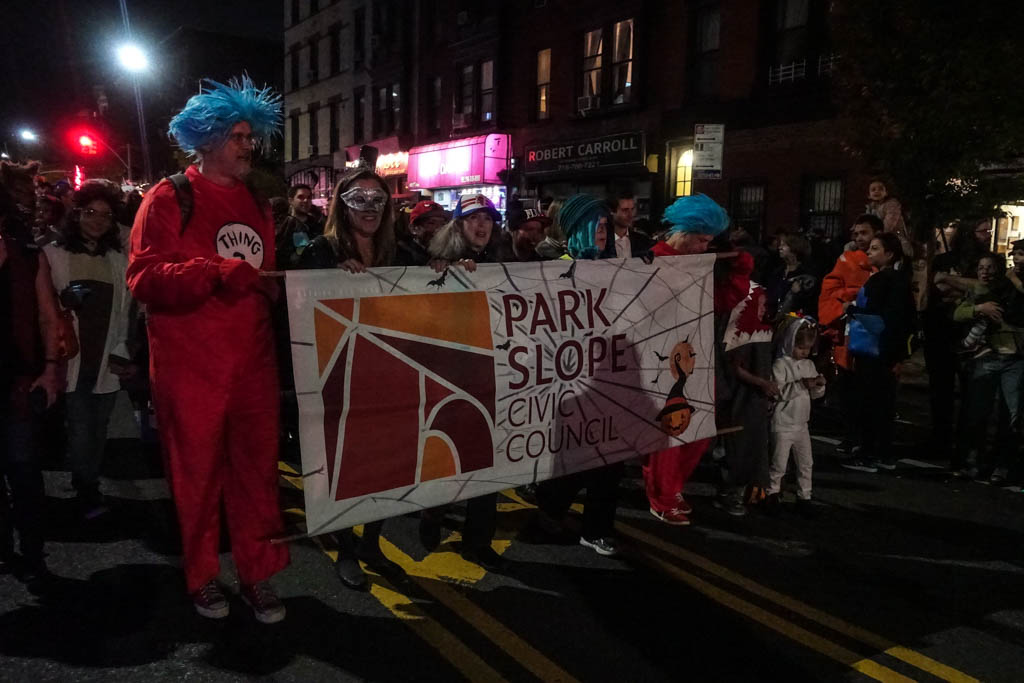 1. Итак, в этот раз я решил не переться в Манхэттен, где главный Хэллоуин парад проходит в Вест-Виллидже, а вместо этого пошёл на более "камерный" парад в бруклинском районе Парк Слоуп. Такие мероприятия обычно организуются органами местного самоуправления, с участием районных бизнесов - считается, что они привлекают посетителей и деньги.
