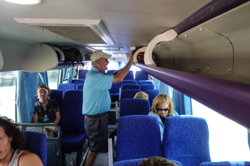 18. Наконец подают автобус, и мы садимся. Это видавший виды драндулет, немного потёртый, но в общем в нормальном состоянии. В автобусе мы ждём ещё где-то минут двадцать. Сначала проходит водитель, и собирает со всех деньги за проезд. Да, автобус платный - за человека и одно место багажа надо отдать ещё где-то десять динаров.