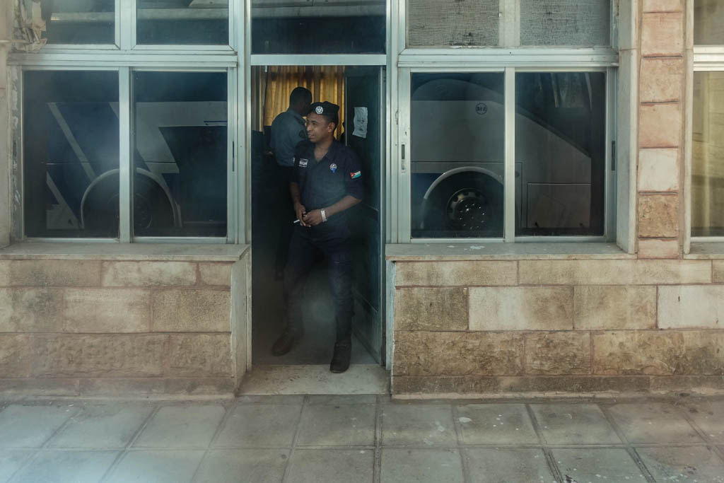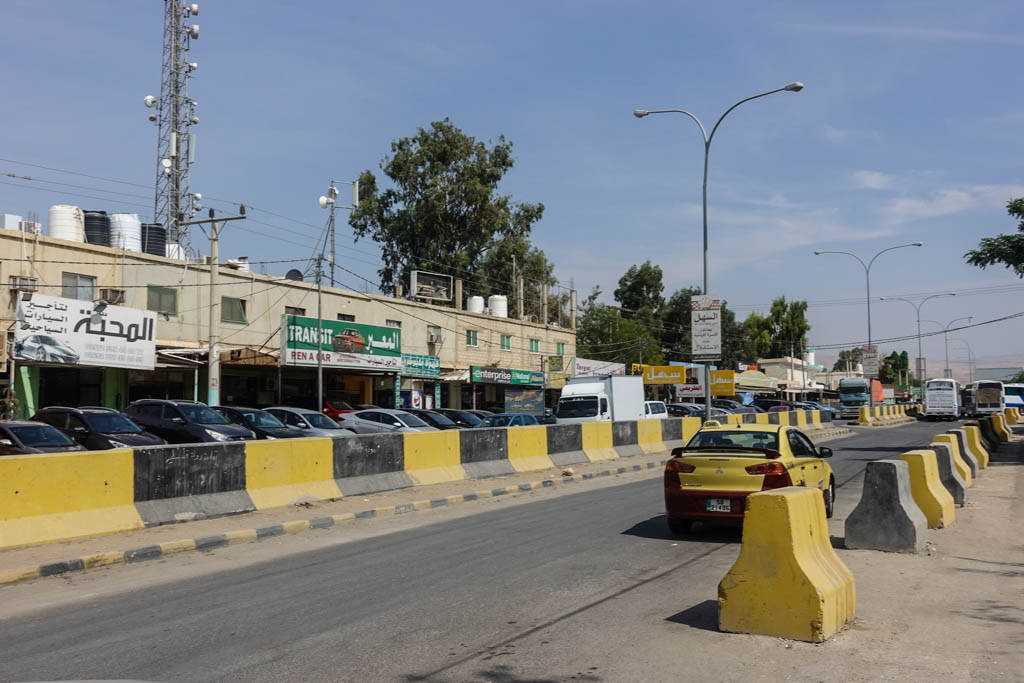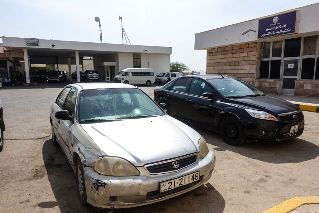 5. Через пару часов после выезда (а никаких не три с половиной) мы подъезжаем к пограничному терминалу Короля Хуссейна. Здесь довольно грязно, а прямо через дорогу от терминала стоят конторы по аренде машин.
