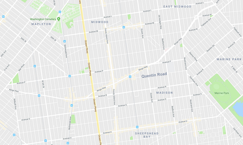 Все окрестные улицы названы просто буквами английского алфавита. Кто его помнит? Если посмотреть на север, там Avenue L, M, N, O, P... А южнее - R, S, T, U... и так далее. И только на том месте, где вроде как должна была быть Avenue Q, вместо неё на карте находится Квентин Роуд.