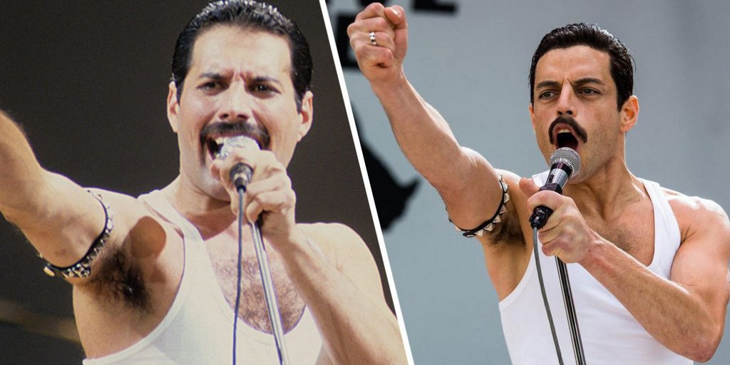 Актёр Рами Малек (известный по сериалу Мистер Робот) очень хорошо изображает жесты и манеры певца, однако постоянно перебарщивает с ними. Если наложить эту избыточную манерность на более деликатные черты актёра, и на слегка преувеличенные зубы то в результате мы получаем персонажа больше похожего на мультипликационного грызуна, чем на рок-звезду.