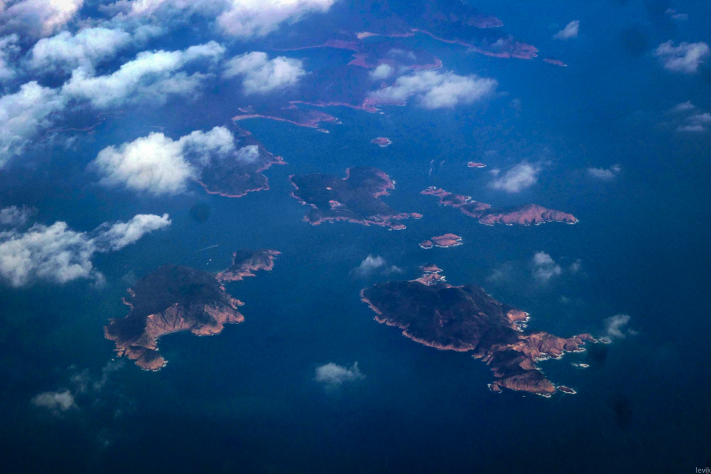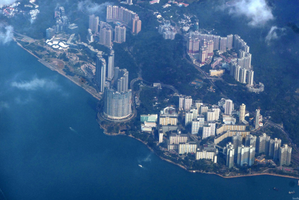 18. Пролетаем над самим Гонконгом. Это ведь тоже остров, пусть и побольше, площадь которого увеличивали последние 150 лет. Видите эти огромные человейники на берегу? Все они стоят на намытой земле.