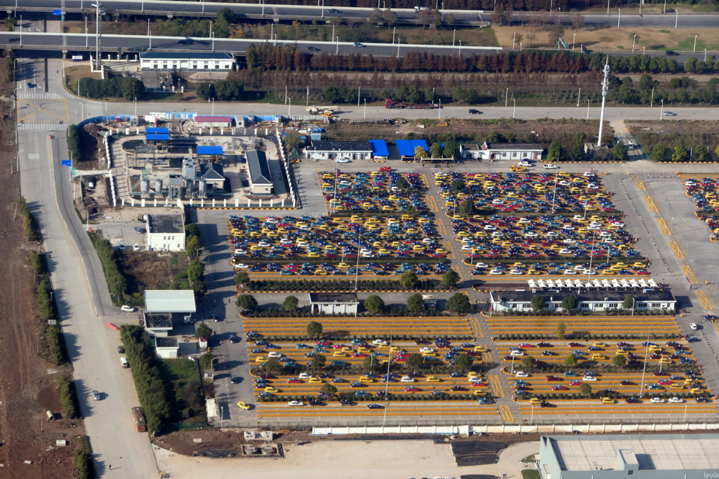 2. Взлетели. Рядом с аэропортом какая-то огромная площадка заполненная машинами. Сперва я думал, что это парковка, но приглядевшись понимаю, что для парковки машины как-то странно расположены. Как вы думаете, для чего это (я не знаю верного ответа)?
