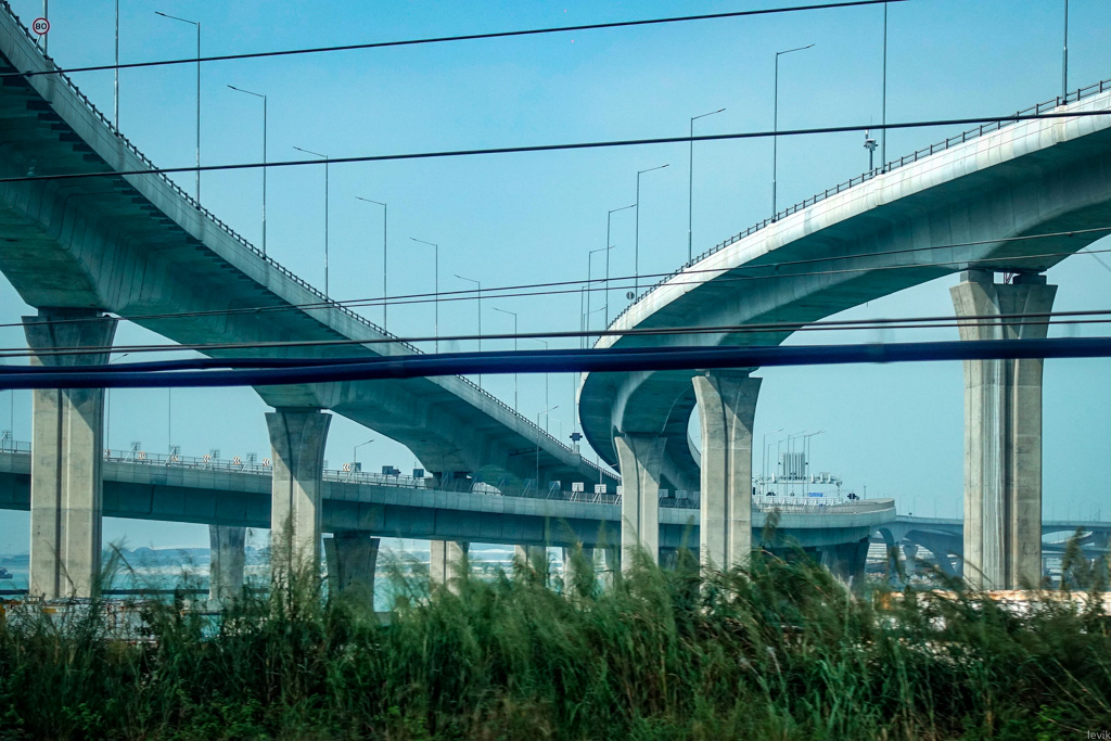 21. Месяц назад этот мост торжественно открыл сам Си Дзинпин, самый нынешний из китайских вождей. Сегодня по этим эстакадам уже ездят машины, хотя их количество строго ограничено квотами на въезд автомобилей в Гонконг.