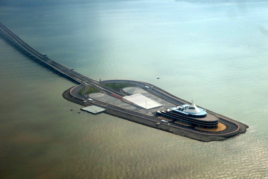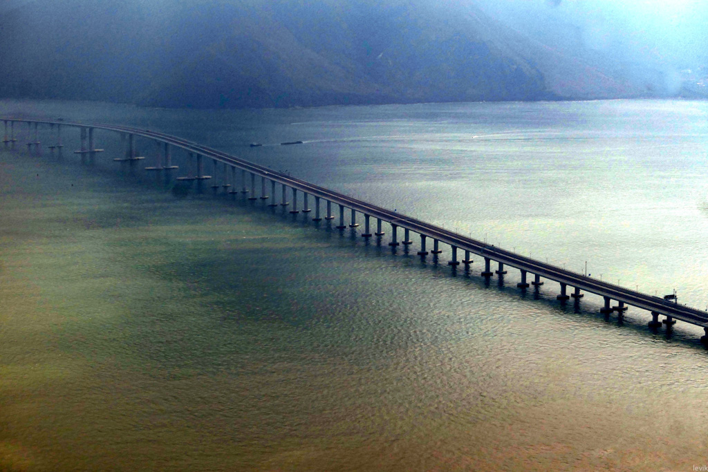 20. Это 55-километровый мегапроект, "Мост Гонконг — Чжухай — Макао". В него входит 5-километровый подводный туннель, а остальные 50 км - это длинная эстакада над водой.