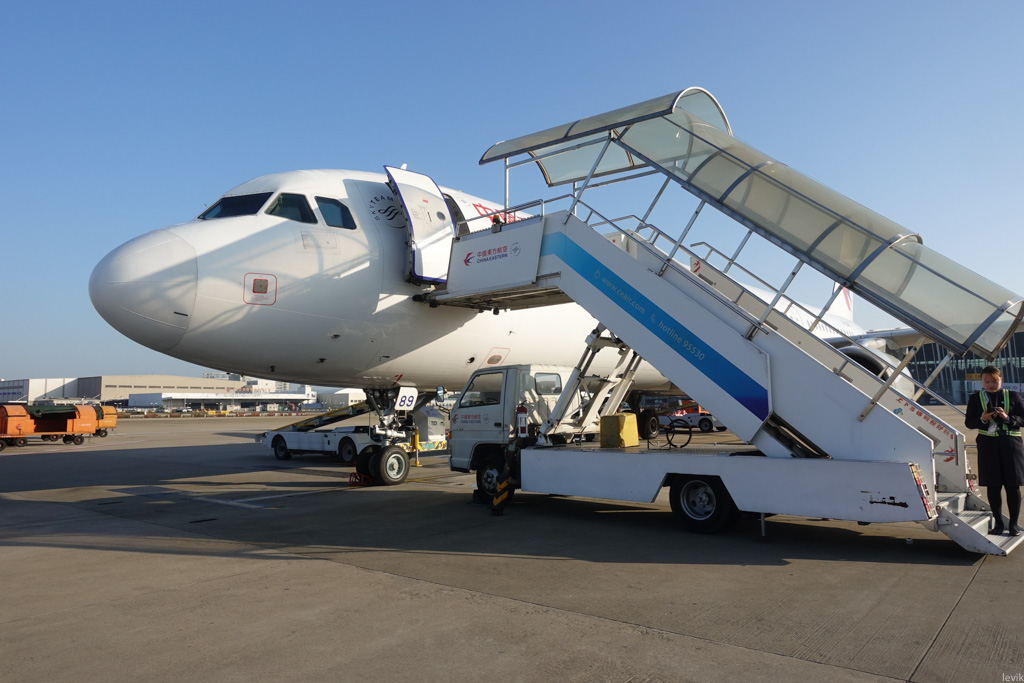1. Посадка в Шанхае. У авиалинии China Eastern здесь штаб-квартира, но всё же на короткие рейсы они не тратятся на рукав, подвозят пассажиров к самолёту автобусами.