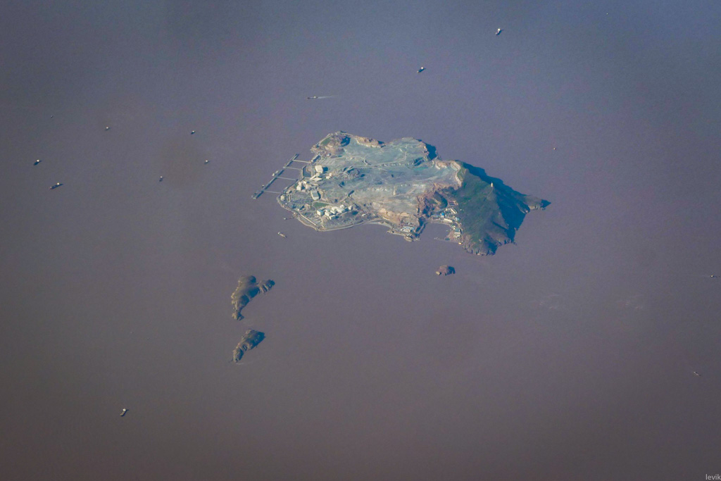 16. Вот ещё один остров, над которым мы пролетали. Судя по цвету, над ним ещё ведут активные работы.