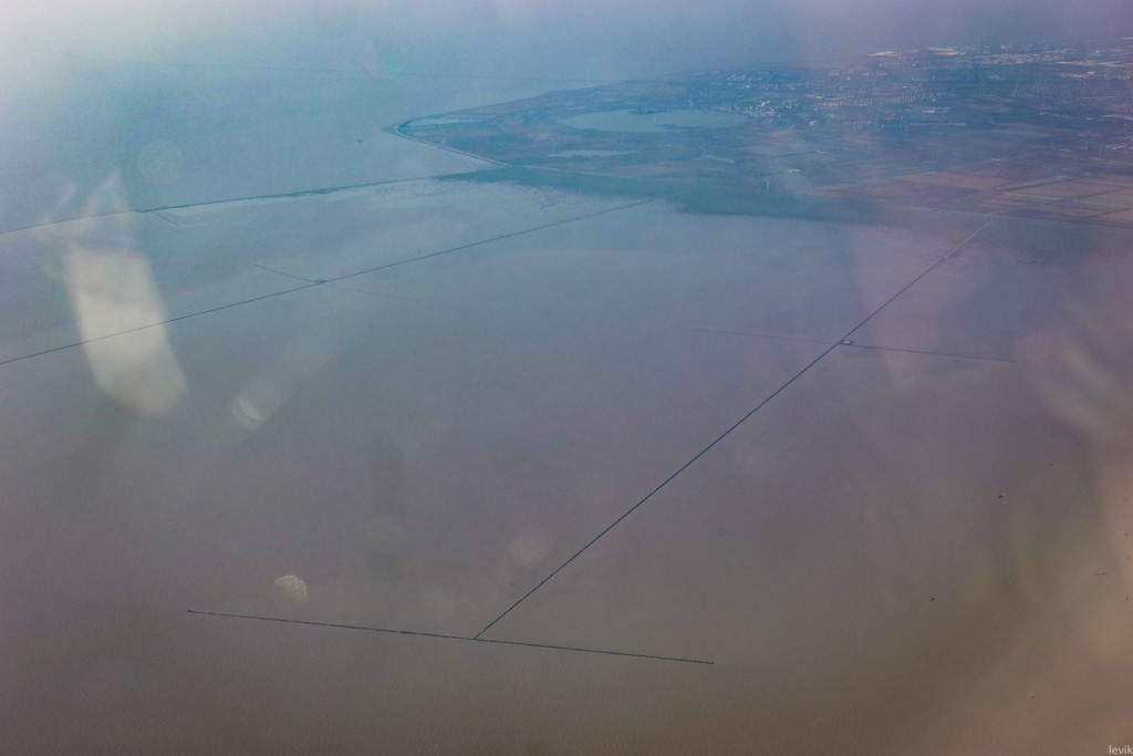 4. Через пять минут после начала рейса мы пролетаем над береговой линией. От берега в море тянутся тонкие но очень длинные насыпи волнорезов - кажется тут километров пять будет! Зачем они, я до сих пор не очень понимаю.