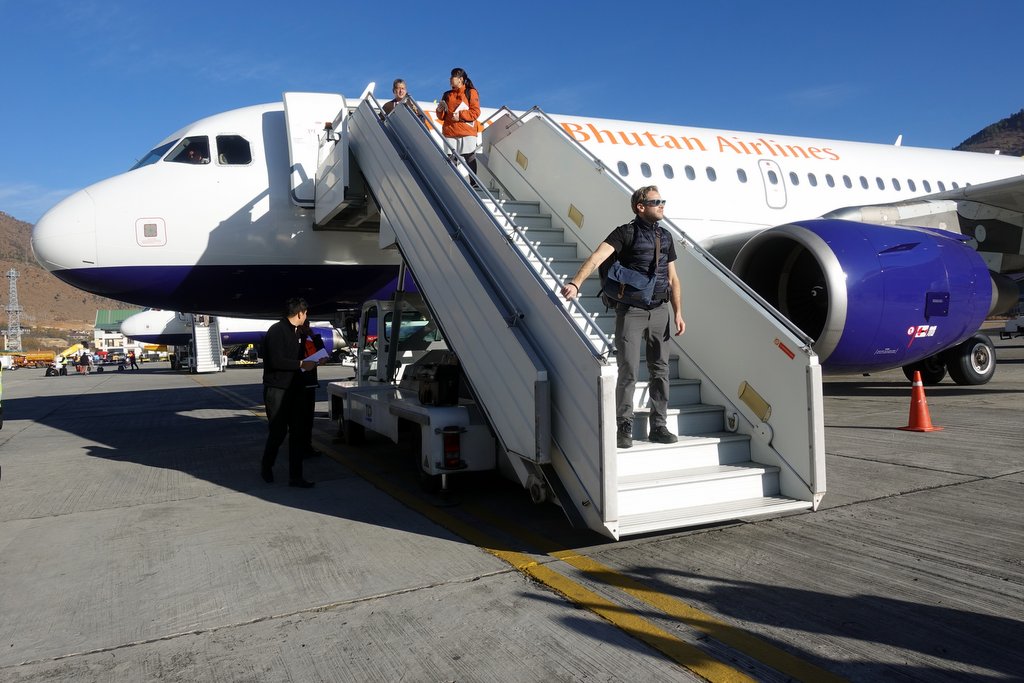 Наше путешествие продолжается. Мы покинули Гонконг, провели ночь в отеле-ящике Бангкока, и вот, Доктор вслед за мной уже отважно спускается по трапу в аэропорту Бутана.