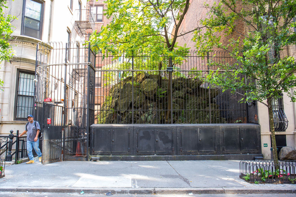 И вот, когда верхний ист-сайд (а точнее, 114я стрит) изначально застраивались девелоперами, те решили не трогать огромный камень, который остался на их территории. Они посчитали, что дробить и убирать его будет стоить огромные деньги, которые не оправдывались тогдашними ценами на недвижимость. В итоге город в буквальном смысле вырос вокруг этого древнего булыжника, чья длина достигает 30 метров, а высота - почти 10.