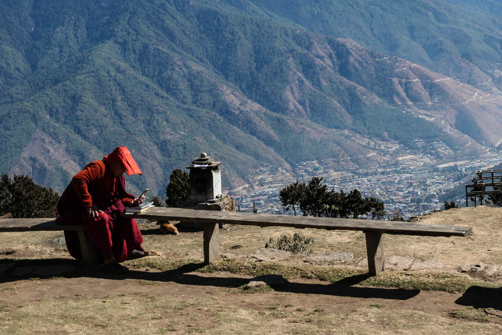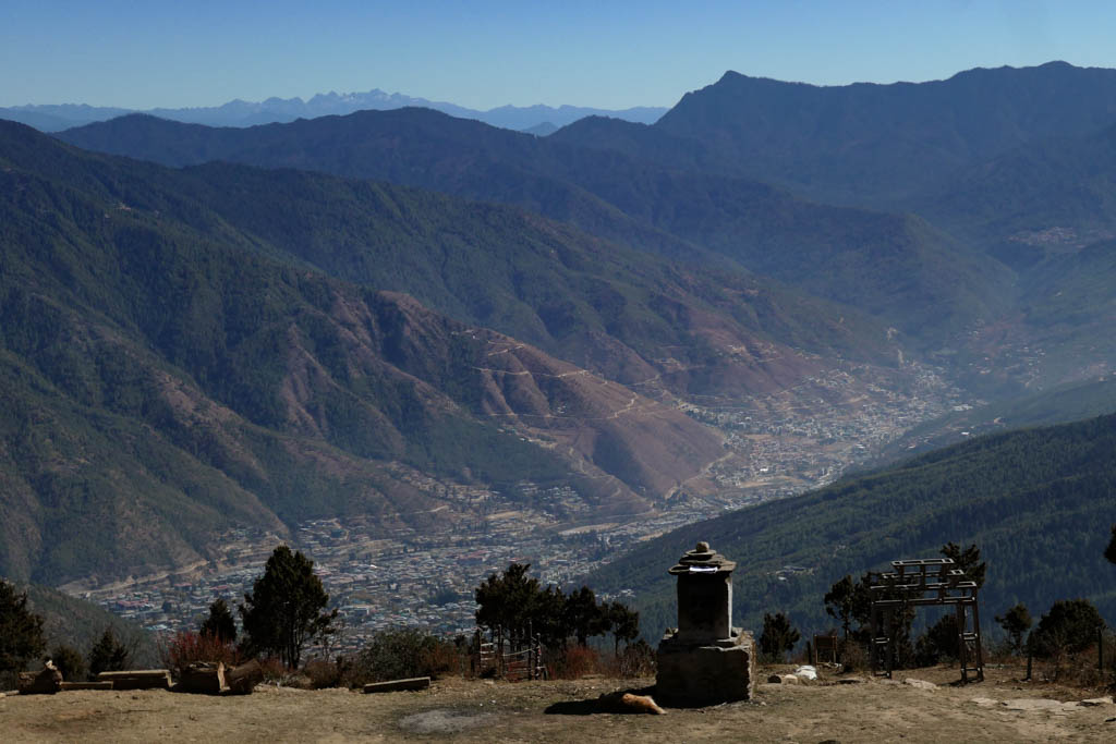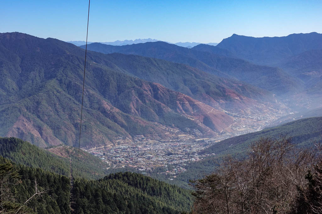 3. Монастырь гордо сидит на склоне горы, с отличным видом вниз на долину. Там внизу прекрасно видна вся столица Бутана. А ещё, хорошо видно, что окружающие горы практически целиком покрыты лесами. Признаюсь, собираясь в Бутан, я не так себе представлял Гималаи.