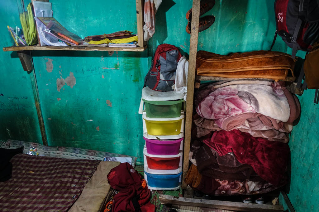 28. Чтоб вы не подумали, что эти комнатки узкие но длинные, здесь видно, сколько места остаются от "ног" матрасиков до противоположной стены. При этом там установили нечто на подобие стенного шкафа, куда складывают одеяла. Думаю, что в цветных пластмассовых контейнерах лежат школьные принадлежности, и другие личные вещи парней.