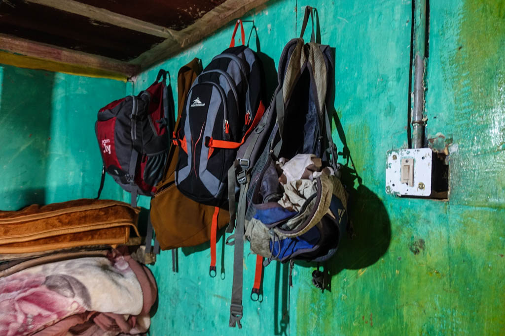 29. А ещё в стену вбиты гвозди, куда можно вешать школьные рюкзаки. Кстати, эти рюкзаки - самое приличное, что я увидел внутри комнатки.