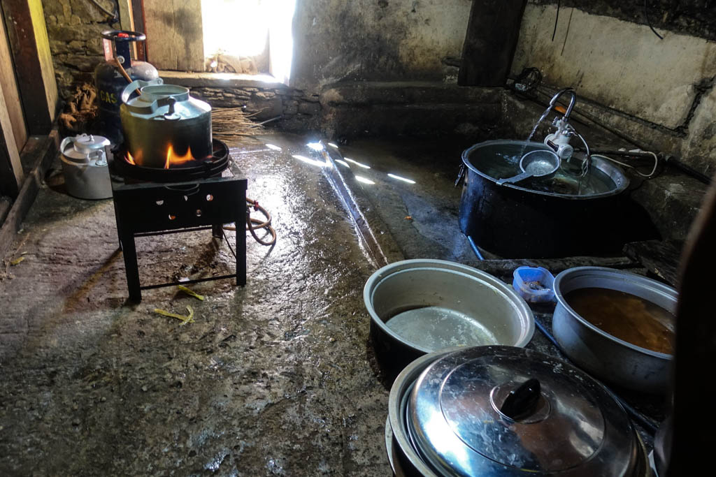 17. А "главная" кухня выглядит вот так: кажется, на огне варится рис (могу ошибаться), тут же стоит кран с фильтром для воды. Посудины все огромные, так как кормить надо много людей.