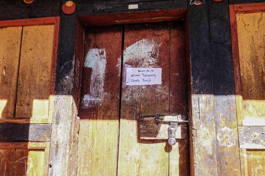 26. На дверях висят бумажки с номерами комнат, и именами обитателей. Тут почему-то на бумажке написано "Комната 11", хотя на двери красуется огромная семёрка. В большинстве комнат монахи живут втроём.