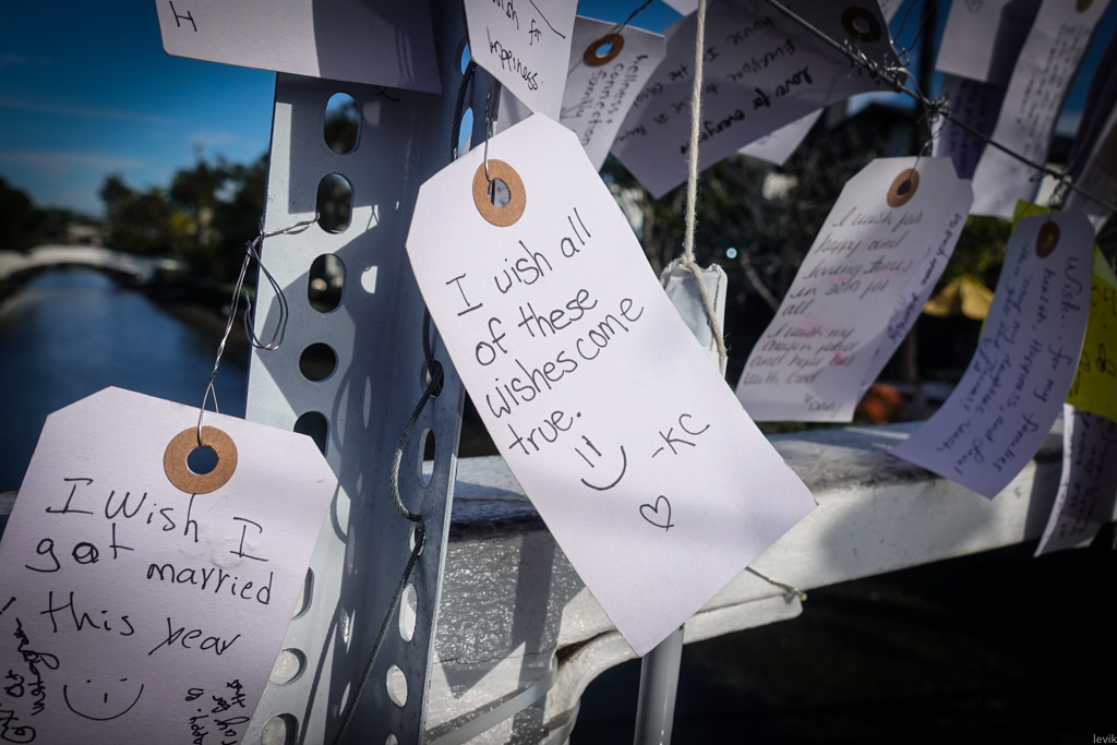 8. При ближайшем рассмотрении оказалось, что это пожелания, написанные жильцами и туристами - каждый может написать своё пожелание на бумажке, о повесить его на мостике. Возможно, идея в том, что ветерок разнесёт написанное по всему миру, и исполнит его, примерно как с буддийскими молитвенными флажками.