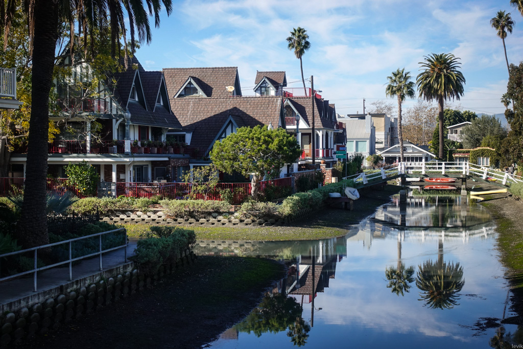 Первый день этой поездки мы с Тоней провели у друзей в Лос Анджелесе. Помимо тех мест, что я уже вам показывал, нас повели в исторический район Венеции (Venice Canal Historic District). Да, в Лос Анджелесе есть своя маленькая Венеция, состоящая из нескольких каналов, где сегодня живут эксцентричные богачи.