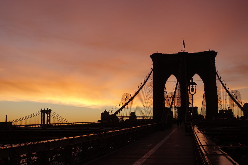 Сказано, сделано! Мы всё равно к семи утра на работу никогда не ходим, а тут такая возможность! Побежали на Бруклинский мост - как известно, это лучшая рассветная точка в городе.