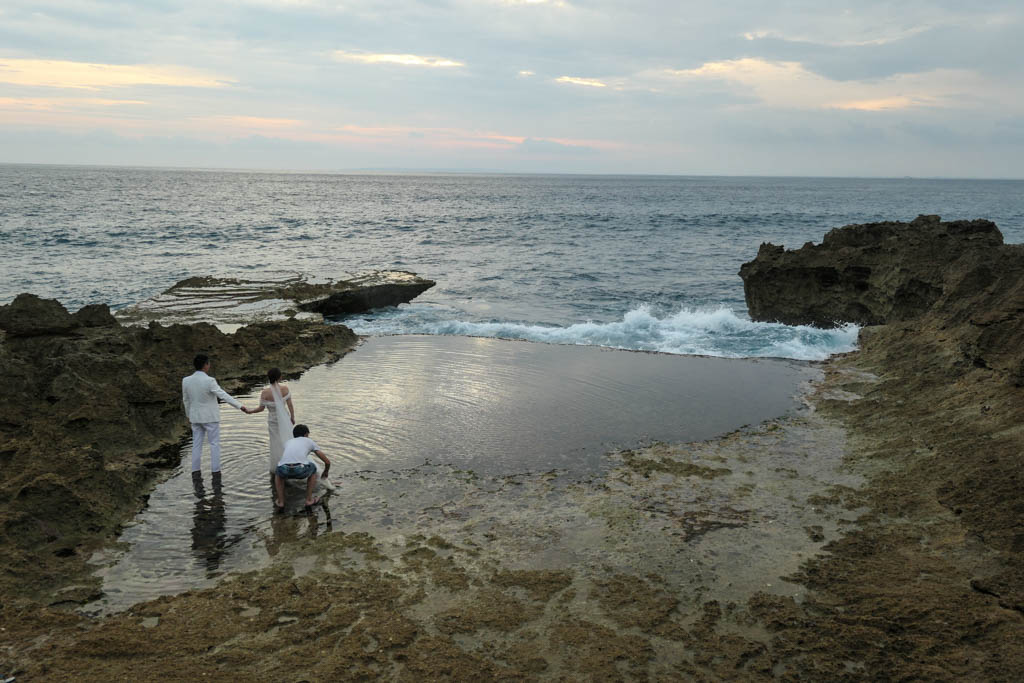 10. И вот, фотографы привели их сюда, скорее всего на "один последний" кадр, который должен был стать самым ярким из всей фотосессии. Жениха с невестой не просто подвели к краю одного из этих прибрежных бассейнов, их завели в воду, так что её уровень доходил молодым людям где-то по щиколотку.