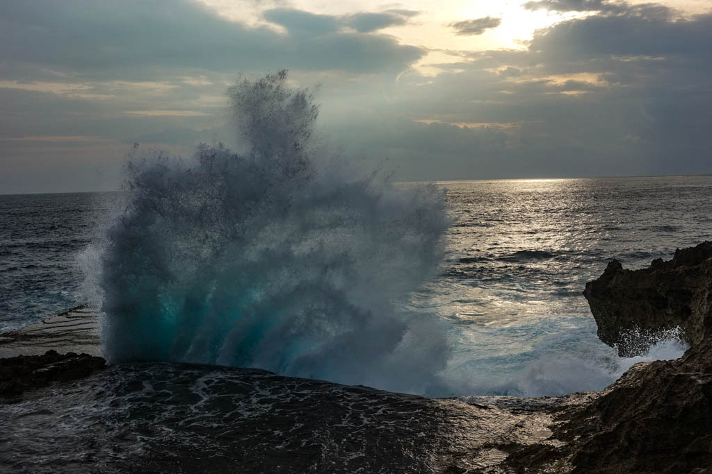 1. Остров Нуса Лембонган находится в получасе от Бали на скоростном пароме. Мы поехали туда на последние пару дней, чтоб отдохнуть от толп туристов, пробок, и замусоренных пляжей основного острова. Остров, кстати, оказался очень приятным. Одна из его главных достопримечательностей - лагуна Слеза Дьявола ("Devil's Tear") на самом западном крае. Здесь, особенно ближе к закату, туристы собираются чтобы посмотреть на удивительную мощь, с которой волны ударяют местные скалы.