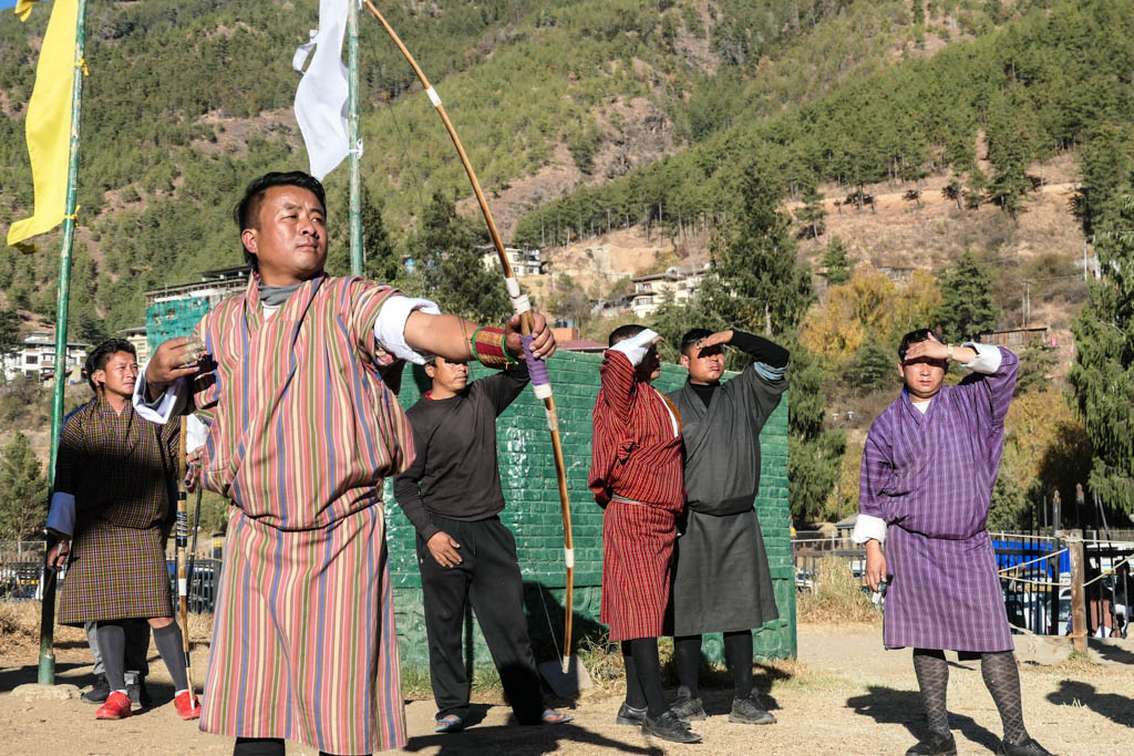 2. Лучная стрельба в Бутане - командный спорт, со своими официальными соревнованиями на различных уровнях. Команды, состоящие из 13 человек соревнуются друг с другом в длительных матчах. Победу одерживают те, кто первым наберёт 25 очков, но так как счёт ведётся по очень сложным правилам, матчи сильно затягиваются. Раньше они могли длиться целый месяц, но в современную эпоху смартфонов, на это ни у кого не хватает терпения, и теперь победитель определяется "всего" за несколько дней.