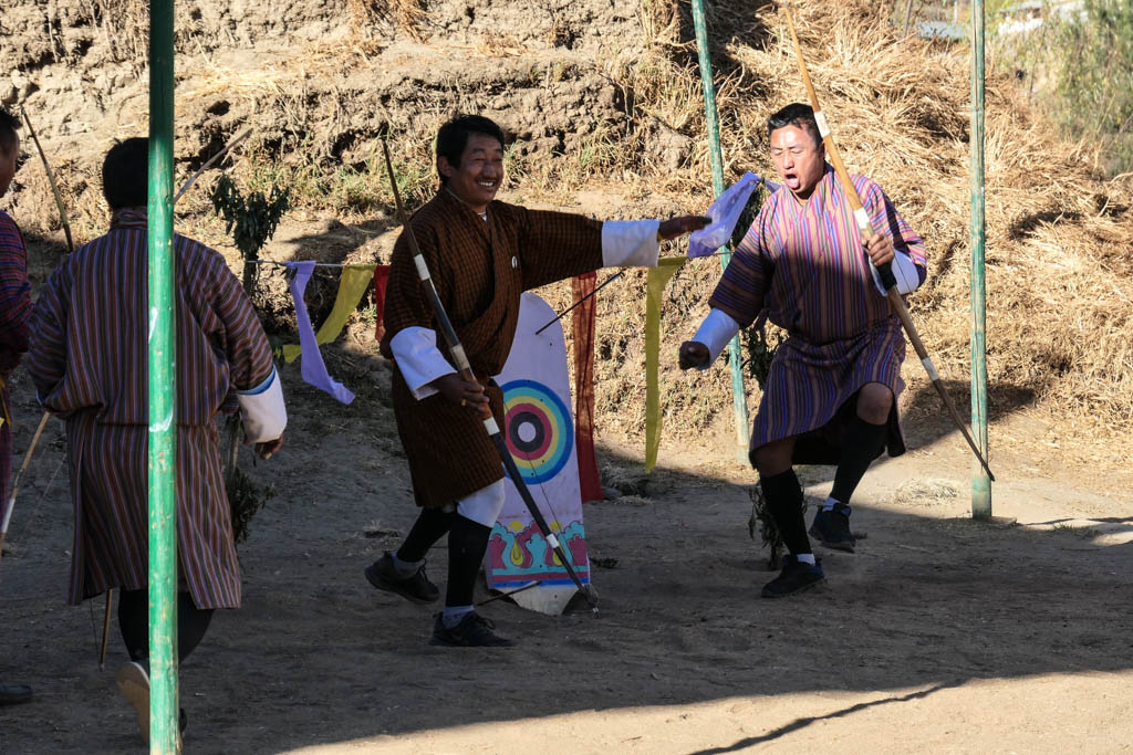 Во время поездки в Бутан, под бдительным надзором гида, мы поехали смотреть на соревнование по стрельбе из лука. Оказалось, что в Бутане это национальный спорт, прямо как хоккей в Канаде, бейсбол в Америке, или футбол во всех нормальных странах.