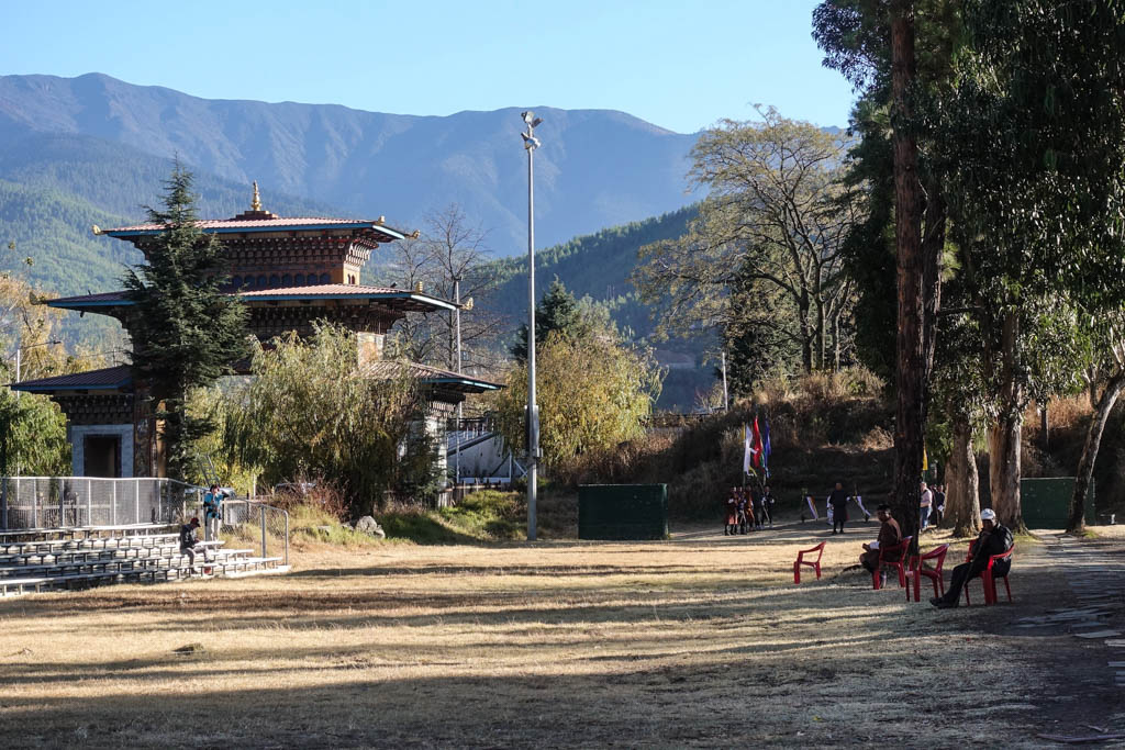 16. Болельщики-бутанцы, а их было не так много, стояли с другой стороны у кромки поля. Они тоже не опасались схлопотать стрелу.