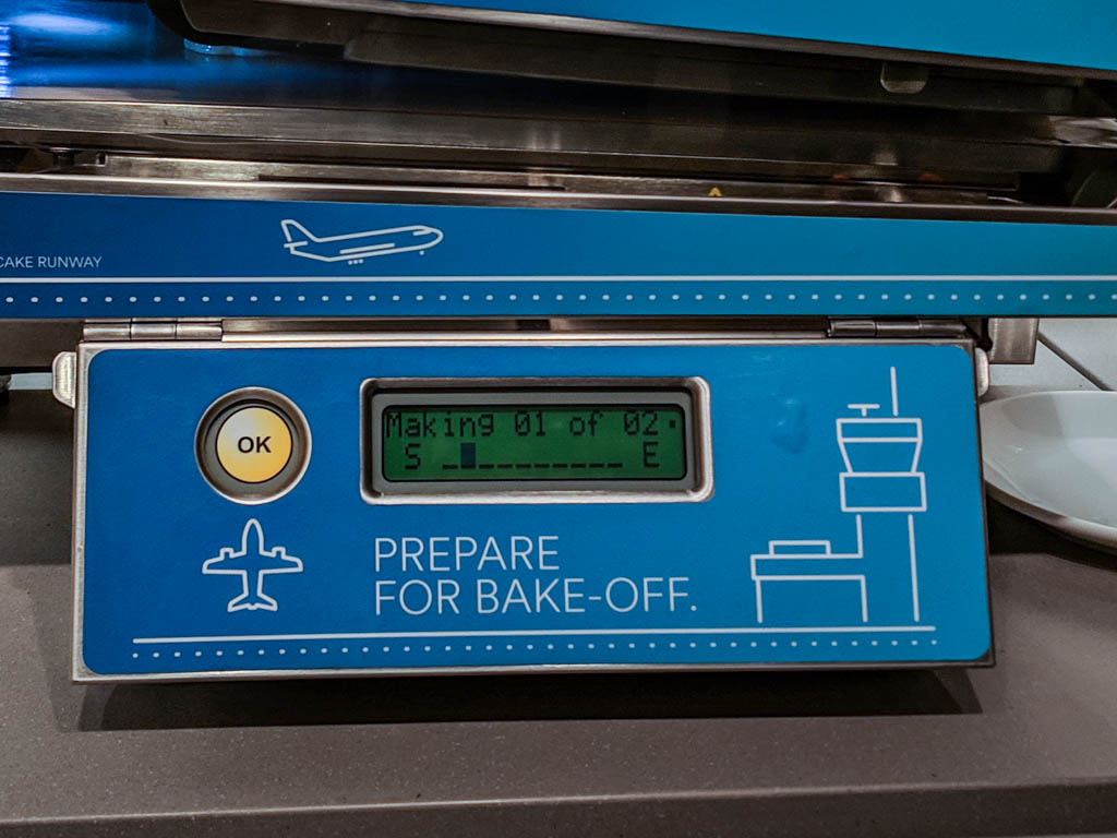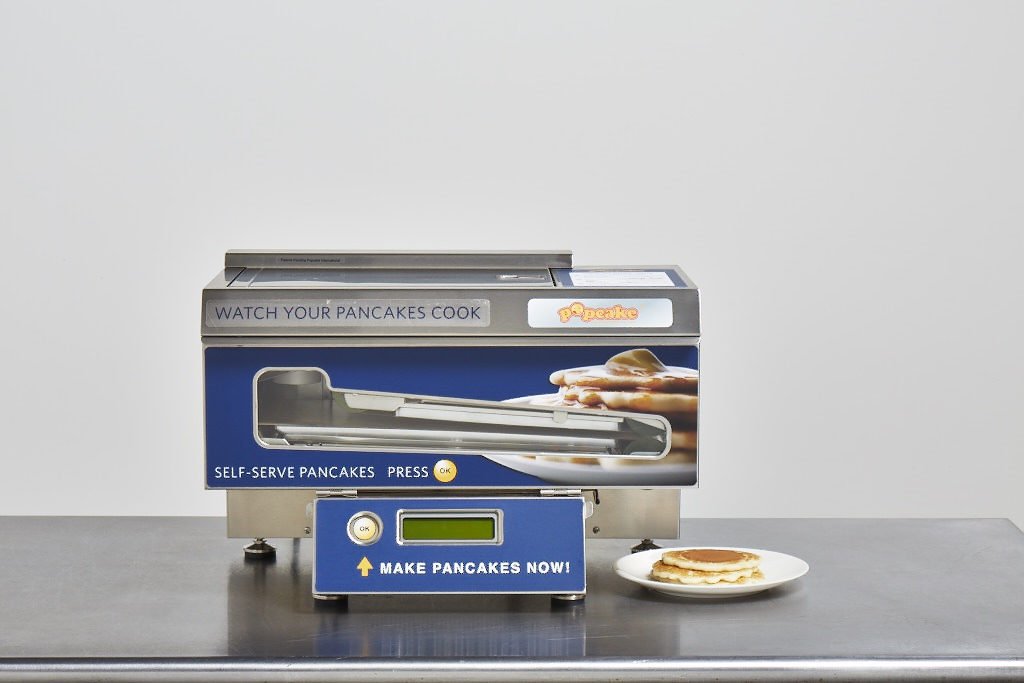 Устройство до удивительного просто с точки зрения пользователя. Ты подходишь, нажимаешь на кнопку, и машина печёт тебе два свежих блина, процесс, за которым можно наблюдать от начала и до конца через окошко сбоку.