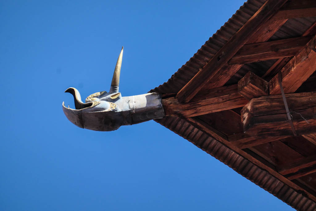 9. Угол крыши украшен каким-то страшным рогатым чудиком. Судя по форме его рта, это не водосток, а просто декоративный элемент, хотя снизу трудно быть на 100% уверенным.