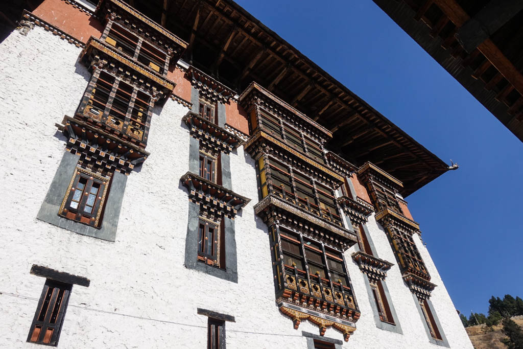 8. Все окна дзонга отделаны резными деревянными рамами, разукрашенными в местных традициях.