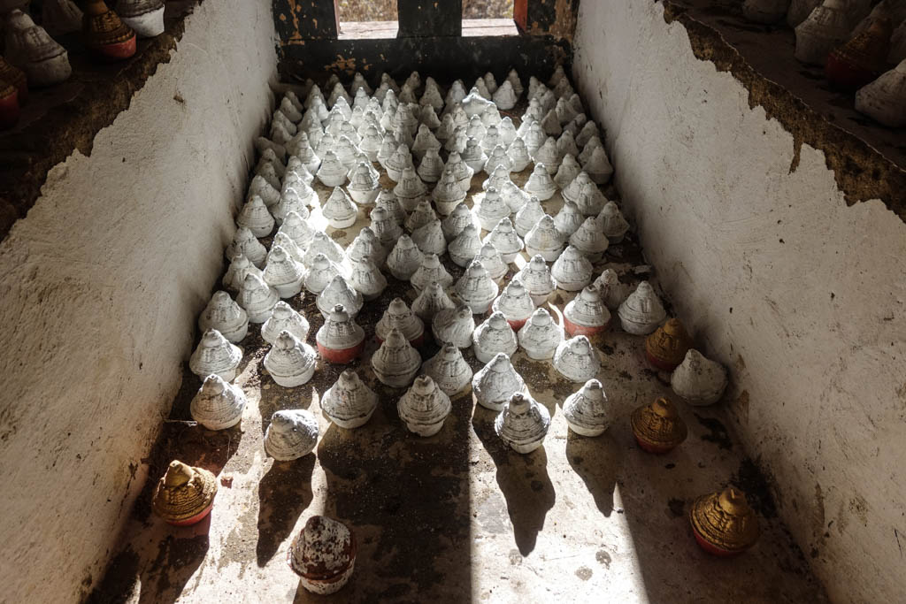 26. Маленькие статуэтки в форме ступы лепят в знак молитвы, часто в память о мёртвых родственниках. В таком случае, в глину могут замешать пепел умершего. Расположение ца-ца несёт огромное значение, так что их нельзя тревожить посторонним (и уж точно не стоит брать с собой в качестве сувенира!)