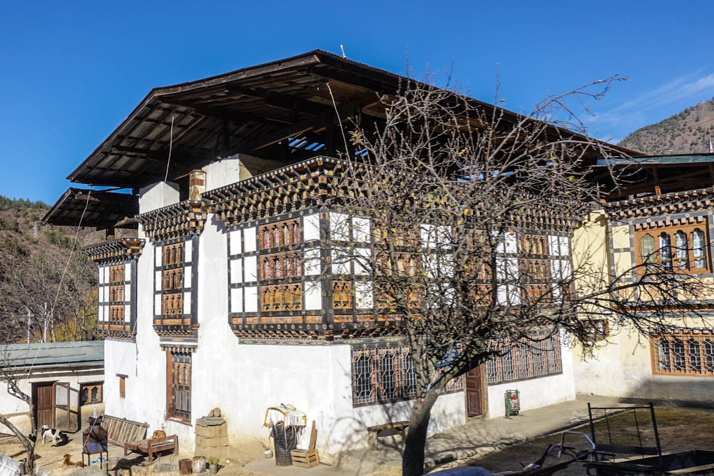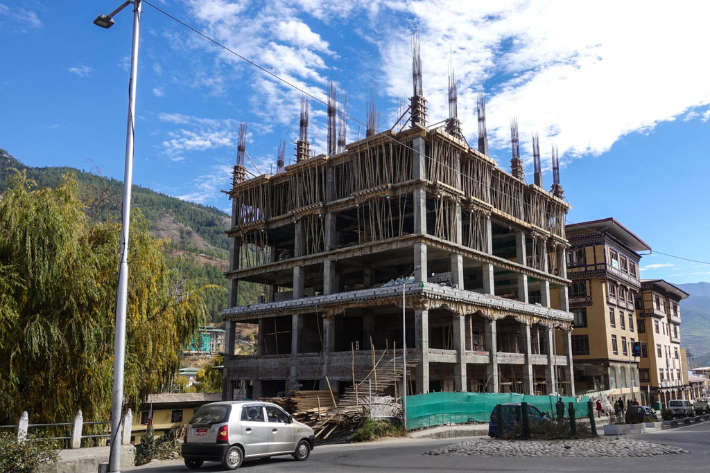 35. Дома подальше от центра могут обойтись с меньшим количеством традиционных элементов. Кстати, по закону, в Бутане нельзя строить ничего выше шести этажей... Так что, считайте, перед нами местные небоскрёбы!