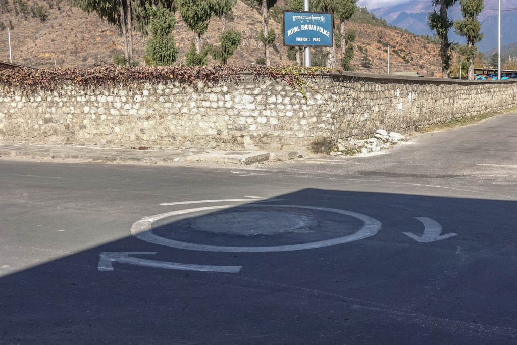 44. Поговорим о дорожном движении. В Бутане нет светофоров. То есть вообще их нет. Все перекрёстки в стране оборудованы в виде круговых развязок. Даже самые маленькие. Движение по часовой стрелке.