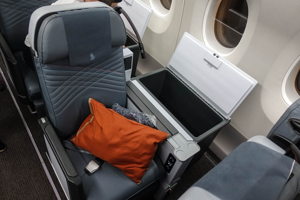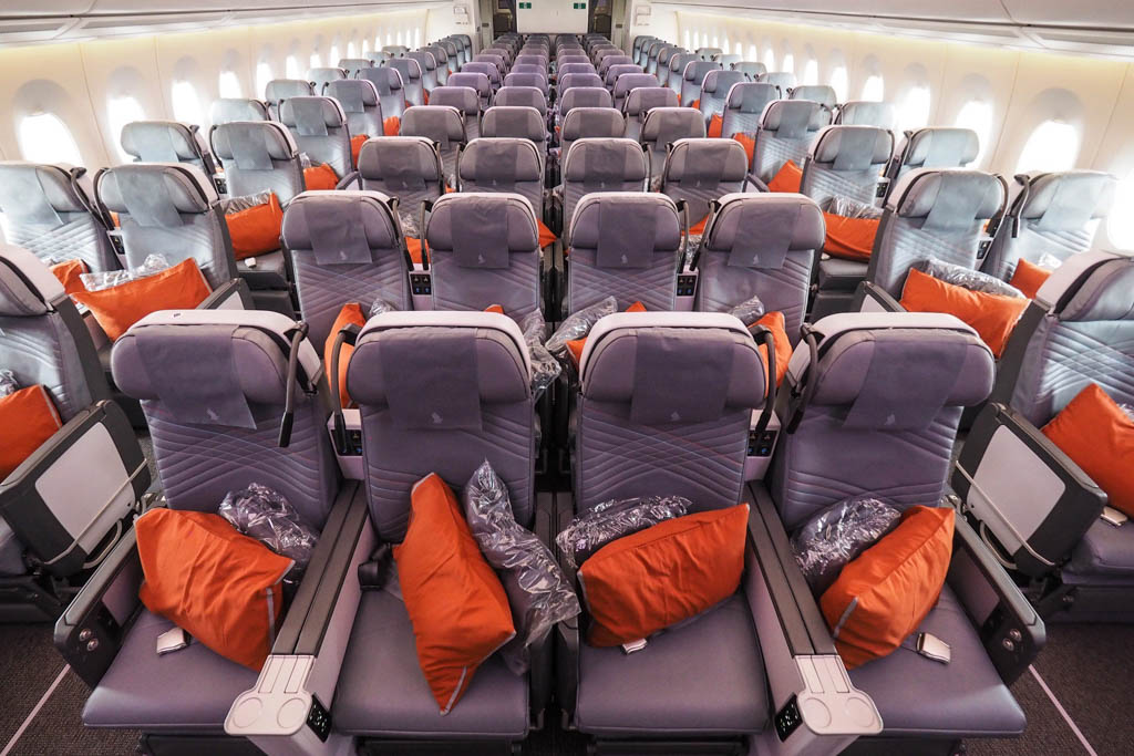 11. Вот как выглядит премиум-эконом салон у сингапурцев. Новенькие сидения в конфигурации 2-4-2. Правда, они не все в такой конфигурации, но об этом мы сейчас поговорим.