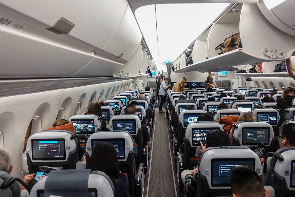 19. Когда собираешься провести в воздухе 18 с лишним часов, система развлечений становится особенно важной. Ведь надо чем-то себя занимать в пути! К счастью тут даже в задней части самолёта большие яркие экраны с богатой библиотекой фильмов.
