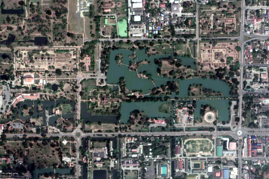 10. Если посмотреть на спутниковый снимок, видно, что развалины храмов и дворцов граничат с обыкновенной пригородной застройкой по всему парку. (Да, территория древней Аютайи официально считается историческим парком, и даже входит в список Всемирного Наследия Юнеско. Туда, кажется,