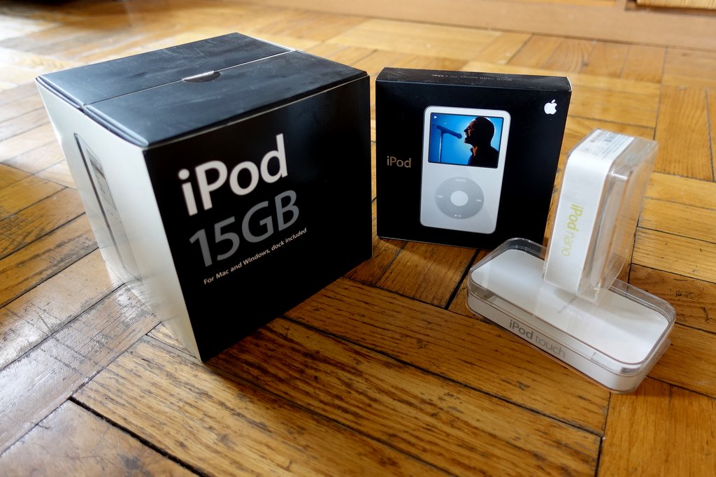 Вот возьмём Айпод - знаменитый предшественник Айфона, который первым приучил весь мир, таскать с собой в кармане устройство с экранчиком, требующее постоянной подзарядки. Я первый свой Айпод купил в 2003 году. Он шёл в огромной коробке слева. Внутри была сложная конструкция с кучей пенопласта, окутывающей различные книжечки, диски, наушники, чехлы и провода. Именно эта роскошная упаковка и подтолкнула меня впервые к мысли, что может стоит её пока не выкидывать... Но что случилось дальше?
