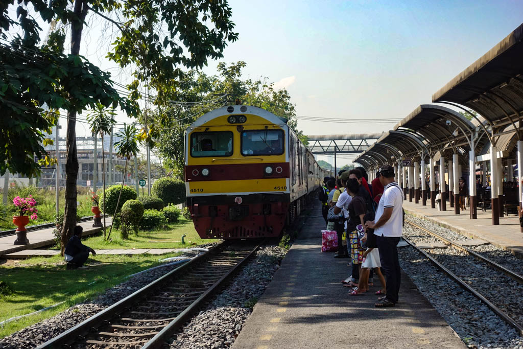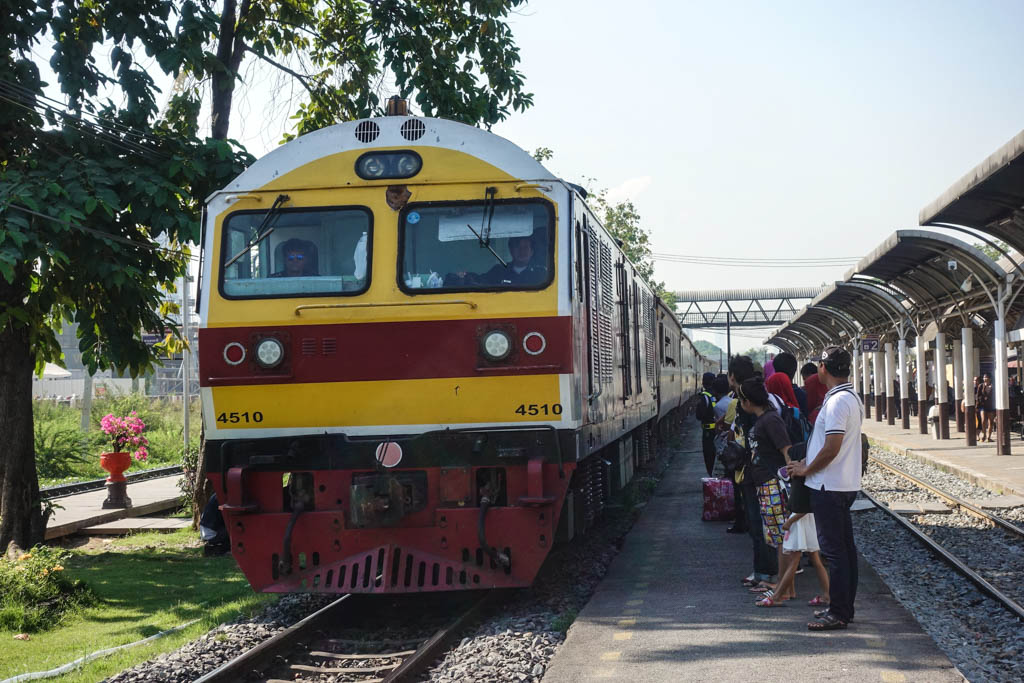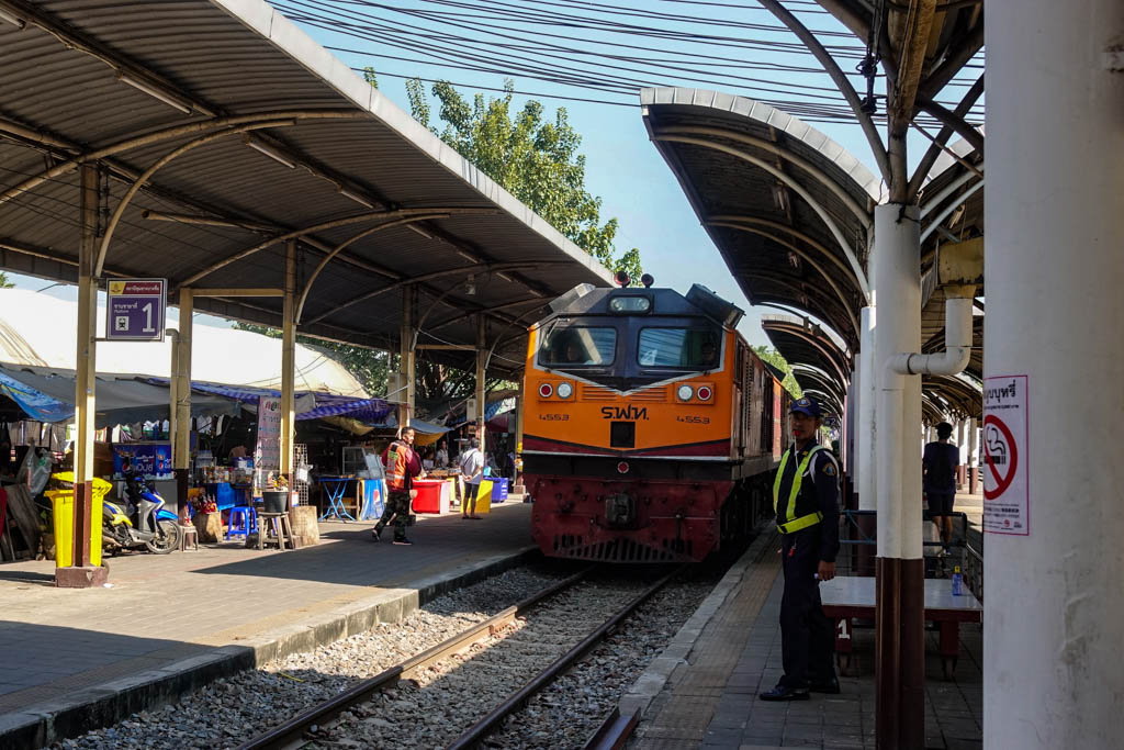 17. А вот и поезд. Правда, это ещё не мой. Железные дороги в Таиланде работают на дизеле. Локомотивы создают очень много шума.
